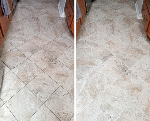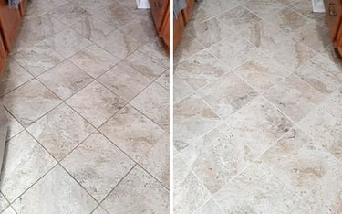 We use a local brand of cleaner Groutko Products and the best in the business. We have over 20 years experience cleaning grout. We apply our Groutko cleaner on the tile and grout surface, wait for a few minutes, scrub the grout and tile, and rinse with fresh water, making your grout and tile look like new again.